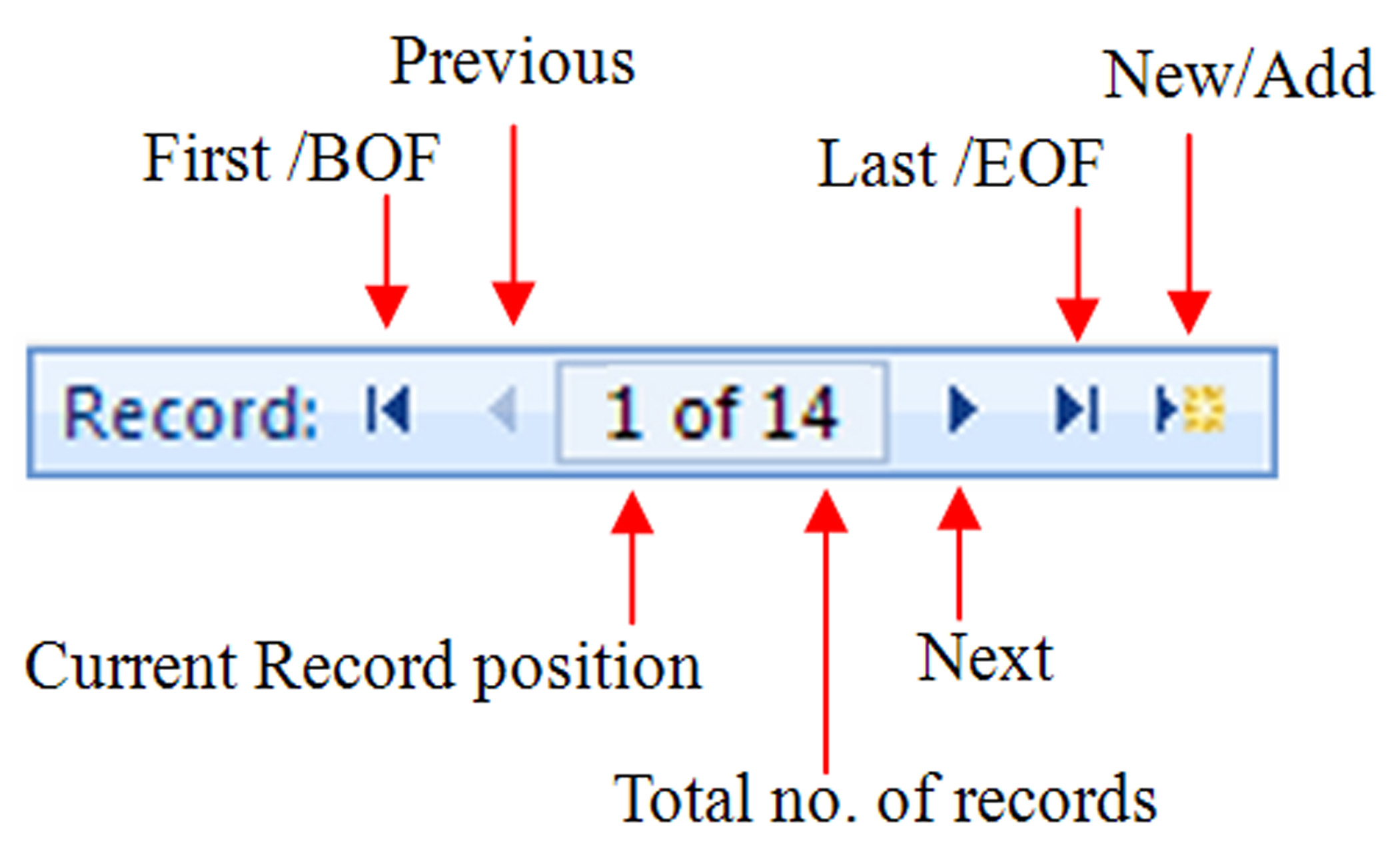 Move between records using buttons with 'left' and 'right' triangles located at the bottom left of each screen. The record number in the white box between these buttons indicates where you are in the range of records ( "1 of 200" indicates you are at the first record of 200 existing records).