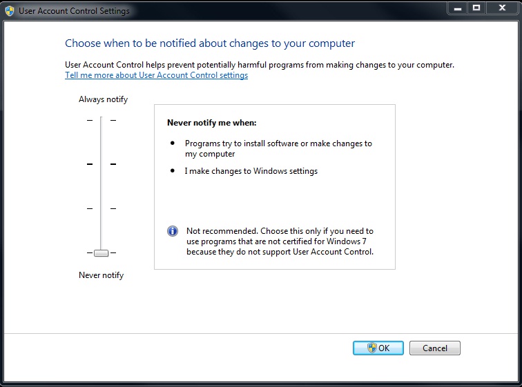 5.7.3 Disable UAC in Windows 7