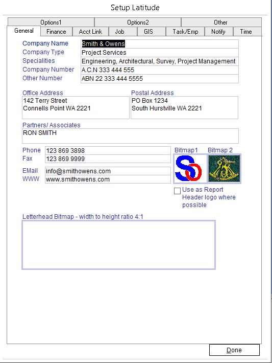 9.2.1 Enter your Company Name as you want to see it in reports and invoices. The case (upper and lower) of the name you enter here will be used in all invoices and reports in Latitude.
