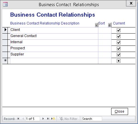 15.1.1 From the Home screen, click "Lookup Tables" and click "Client Relationship" to open the "Business Contact Relationship" screen.