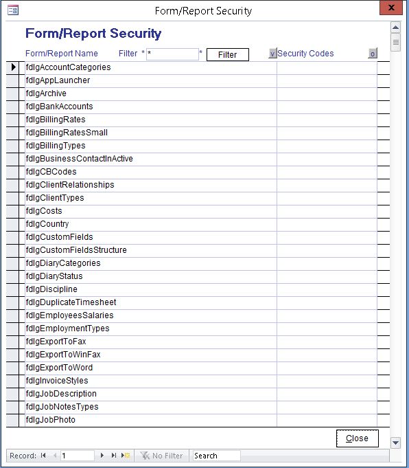 These security codes are compared to the security codes allotted to individual forms and reports. If a match is found or if the form or report has no security codes, then the user is permitted into the form or report.