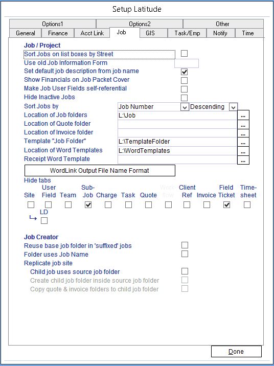 NOTE: Absolute and relative paths are supported. If a relative path is used, the root path is based on the root Job folder in the Latitude Setup. It is suggested that the Job Number is used as the name of the folder.