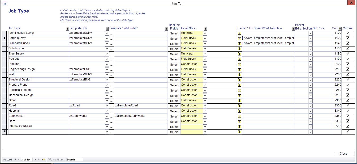 Select "Lookup Tables" from the Menubar Ribbon Click and then "Job Type"