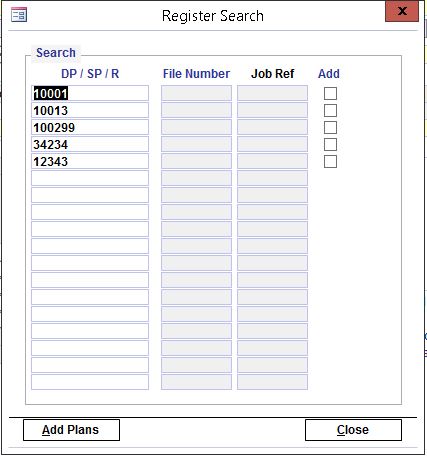If the DP is not on the register, the add checkbox field will appear. Placing a tick mark on the Add checkbox and clicking the Add Plans button will automatically add an entry in the Register.