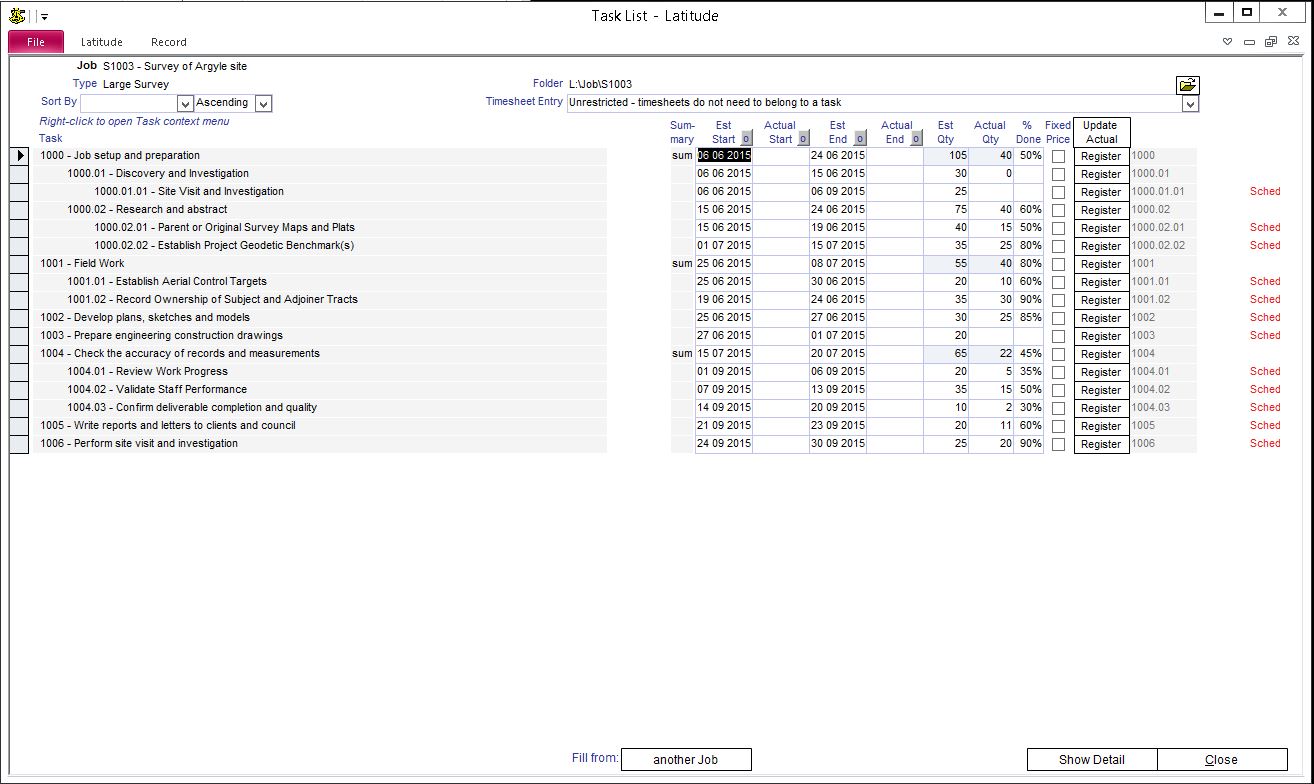 You can allocate these items to individual employees and plan when they are expected to be completed. These Job Task also appear in the individuals ToDo lists. For more information on ToDo Lists see the ToDo section of this manual.