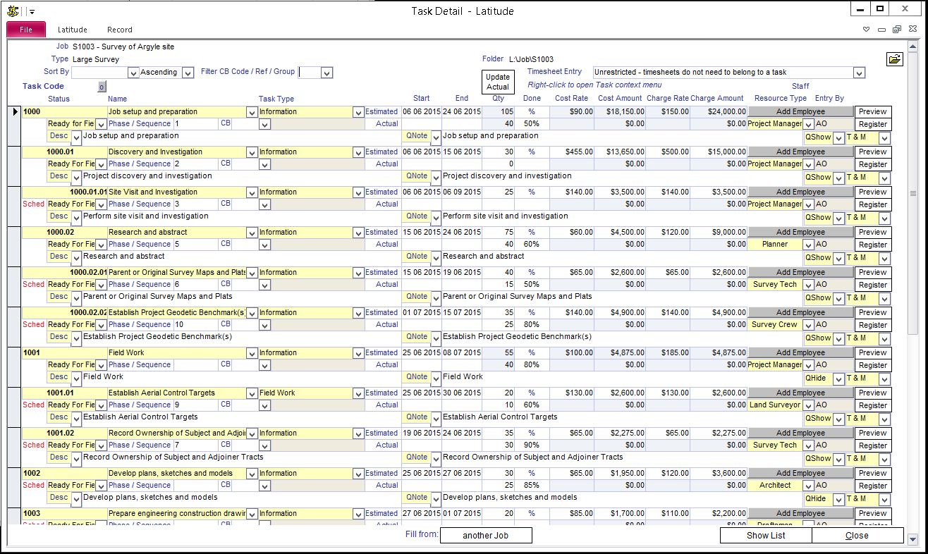 After entering/maintaining Tasks, you can copy the task to any Sub-Jobs of the current Job by clicking the "Copy Tasks to Sub-Job" button on the bottom of the Task screen.