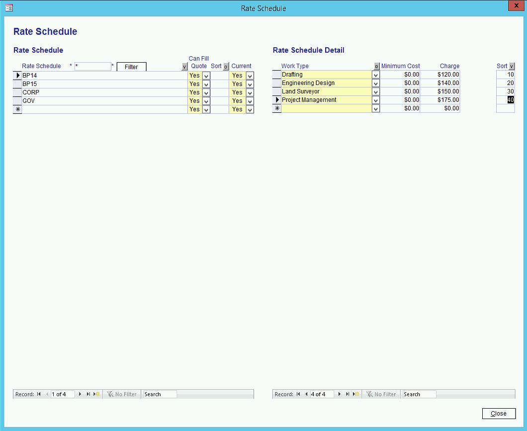 31.1.3 The Rate Schedule overrides the employee's Work Type charge rates. Consequently, if a Work Type is not in the Schedule, the employee's Charge Rate is used.