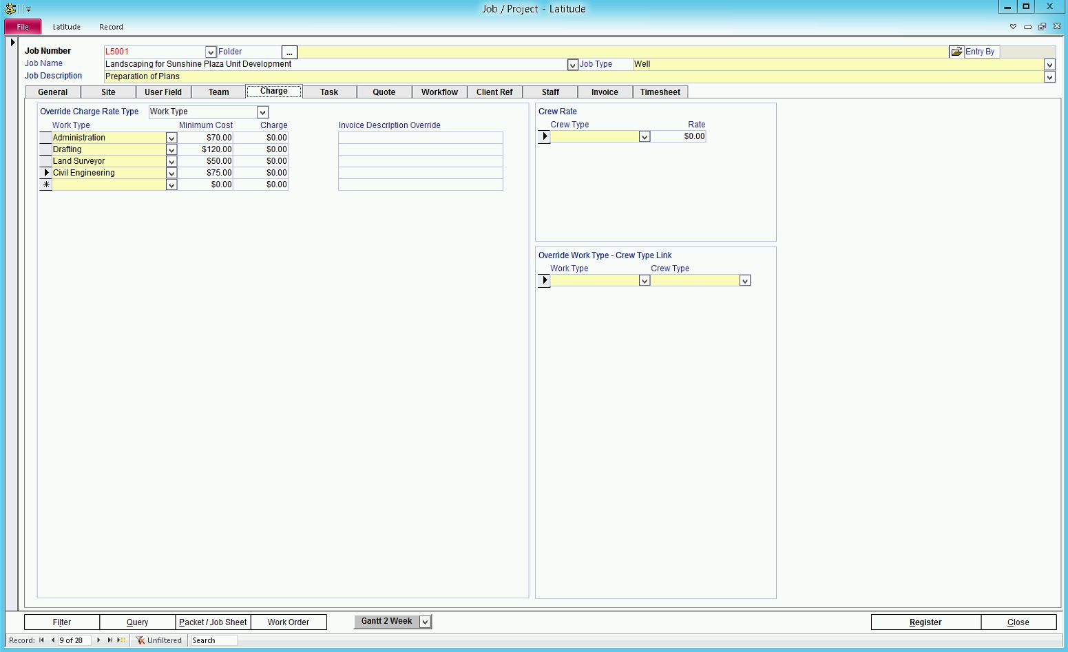 31.4.3 Job Work Type Charge Rates override the employee's Work Type charge rates. Consequently, if a Charge Rate for a Work Type is not set for a Job, the employee's Charge Rate is used.