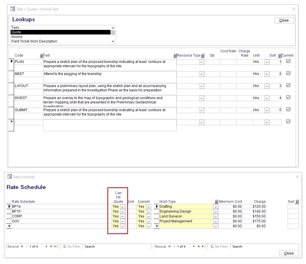 If you have Rate Schedules, you can also flag them to appear as option to fill the Quote. See "Rate Schedules" help section.