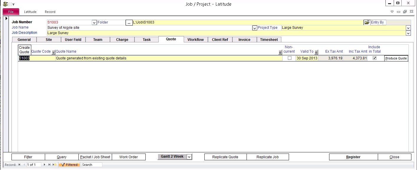 32.3.1 Use the Business Contacts screen to search for the Client. Click on the Job tab and double click on the Job you wish to quote.