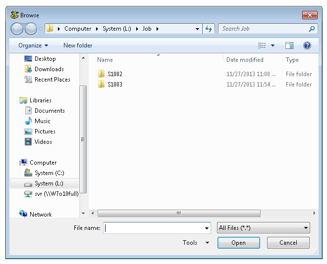 If you use a filing system other than Job numbers, the File field allows you to specify the File location.