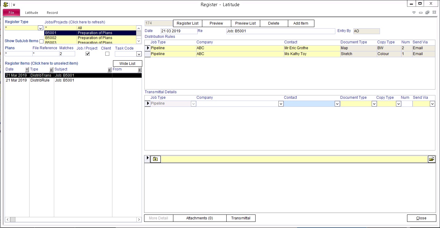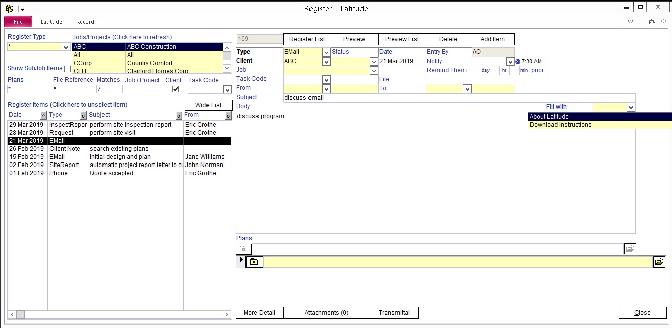 36.3.1 When creating a new Register Item, the Register Type, Client, Date, Job, Task Code and Entry By fields are filled-in based on how the Register Item is created, the criteria selected and the current user's login.