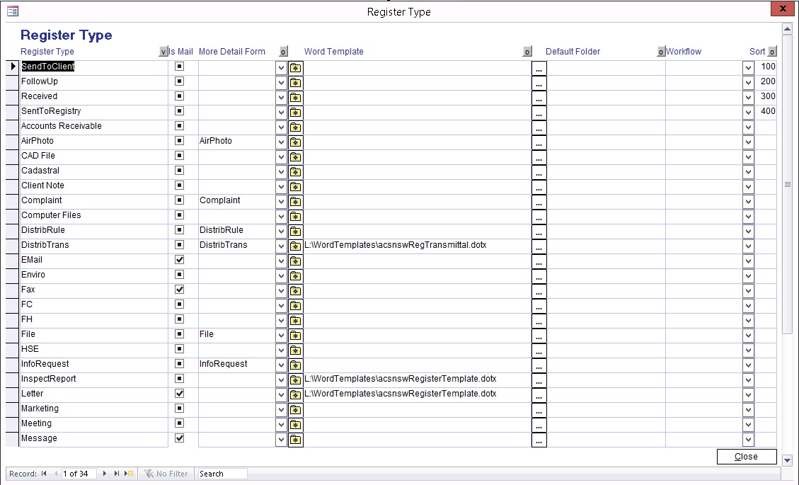 When adding Register Types to the "Register", be aware that there are several special Register Type names. They are "Complaint, Plan, File, AirPhoto and InfoRequest". For more information on these types, see below.