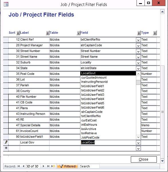 After closing the Filter Setup screen, press F9 and click the dropdown arrow to select the newly added field.
