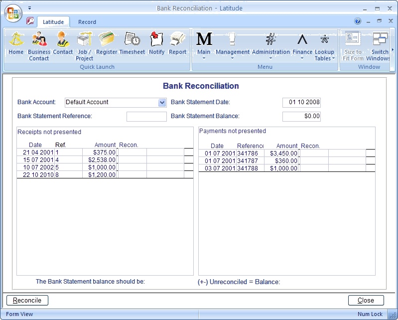 62.1.9 If the Bank Statement Closing Balance and Latitude transactions match, a message "Latitude agrees with your Bank Statement balance." will appear. Otherwise, a message "Latitude thinks you $… more (or less) than your bank statement says" will appear.