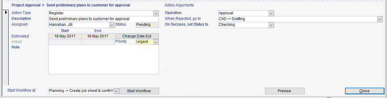 Action - Opens the workflow screen with the action in focus ready for data entry.