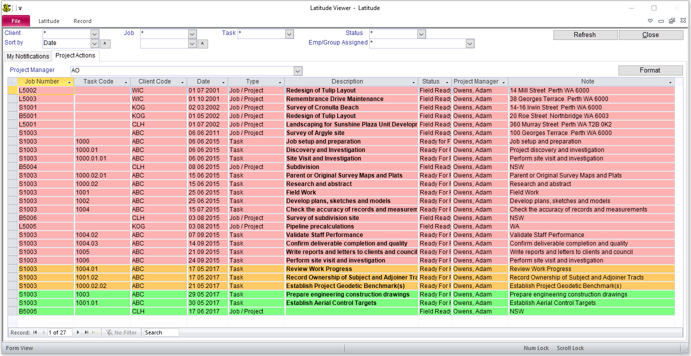 82.4.1 Lists all projects & tasks where the current logged-on user is the project manager. If the current logged-on user is a "Database Owner" or has rights to view projects & tasks belonging to other project managers, the user can filter the "Project Actions" to list them.